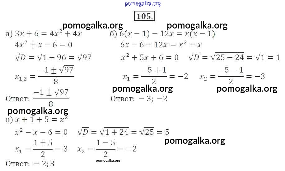 Готовые ответы - Алгебра 9 класс рабочая тетрадь Минаева С.С. - упражнение 105