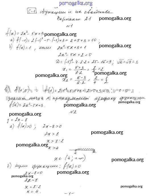 алгебра / самостоятельная работа / ср-1. вариант / А1