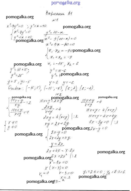 Готовые ответы - Алгебра 9 класс самостоятельные и контрольные работы Ершова А.П. - ср-10. вариант самостоятельная работа В1