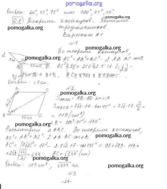 геометрия / к учебнику Атанасяна / самостоятельная работа / ср-8. вариант / А1