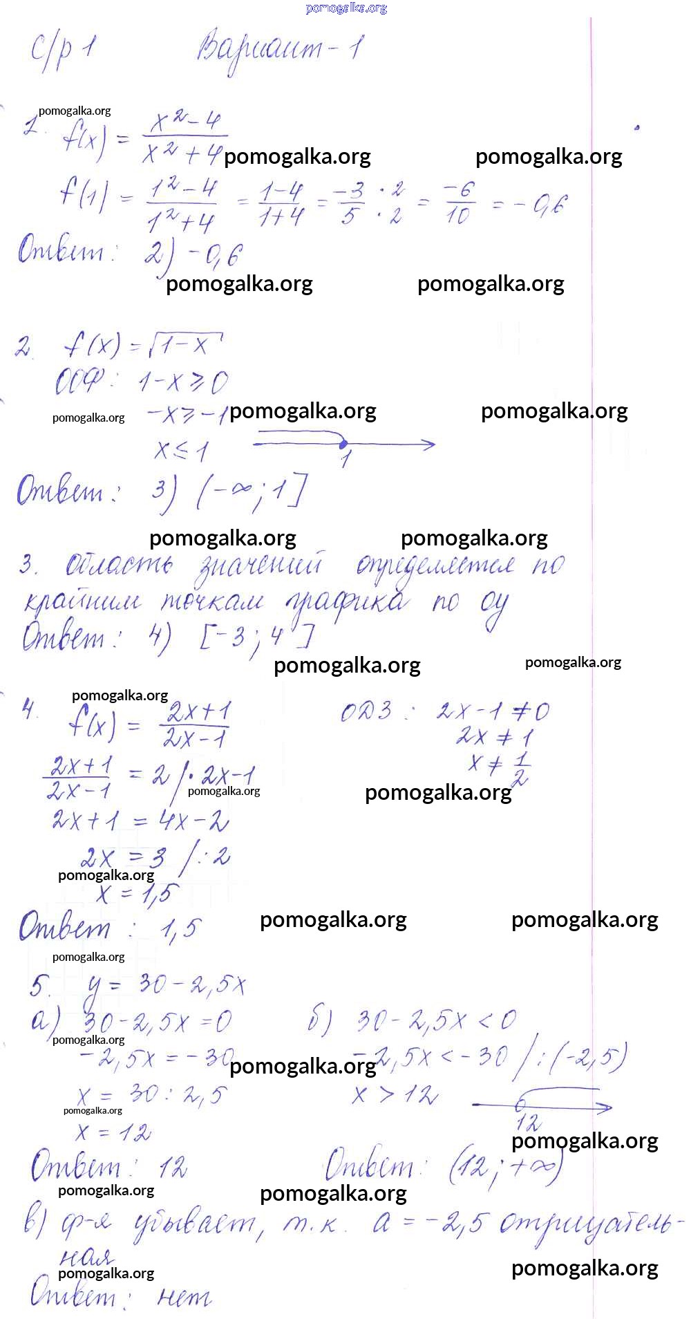 КР-1. Функции и их свойства. Квадратный трехчлен. Квадратичная функция и её график