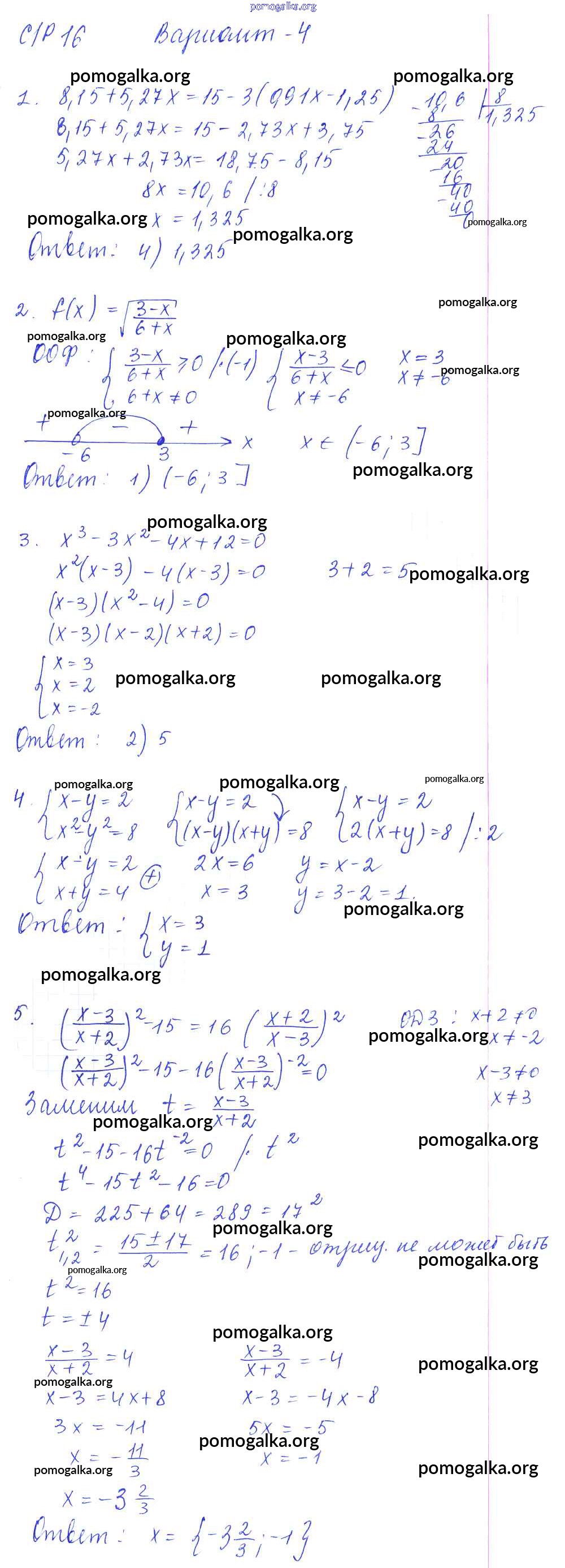 СР-16. Итоговое повторение. Решение уравнений, неравенств и их систем