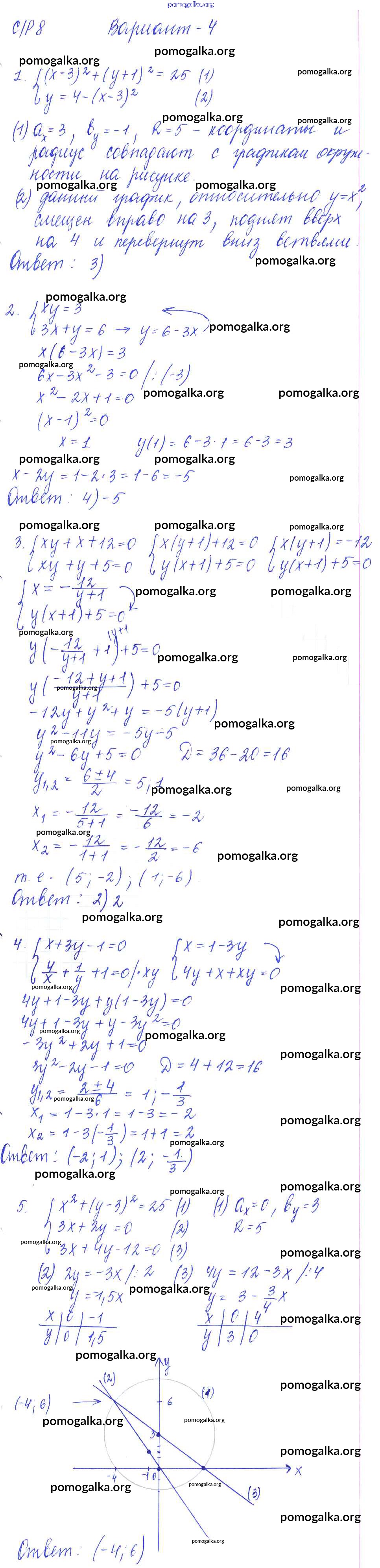 Готовые ответы - Алгебра 9 класс самостоятельные и контрольные работы Глазков Ю.А. (к уч. Макарычева) - ср-8 самостоятельная работа вариант 4