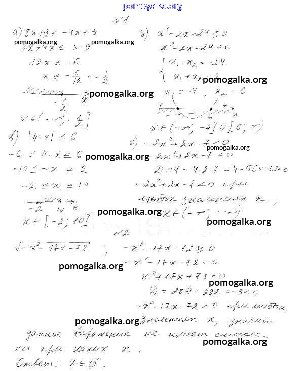 Тема 1. Неравенства и системы неравенств. Самостоятельные работы 1-6