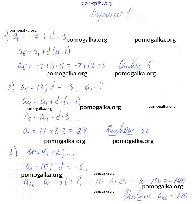 Тема 4. Прогрессии. Самостоятельные работы 21-26