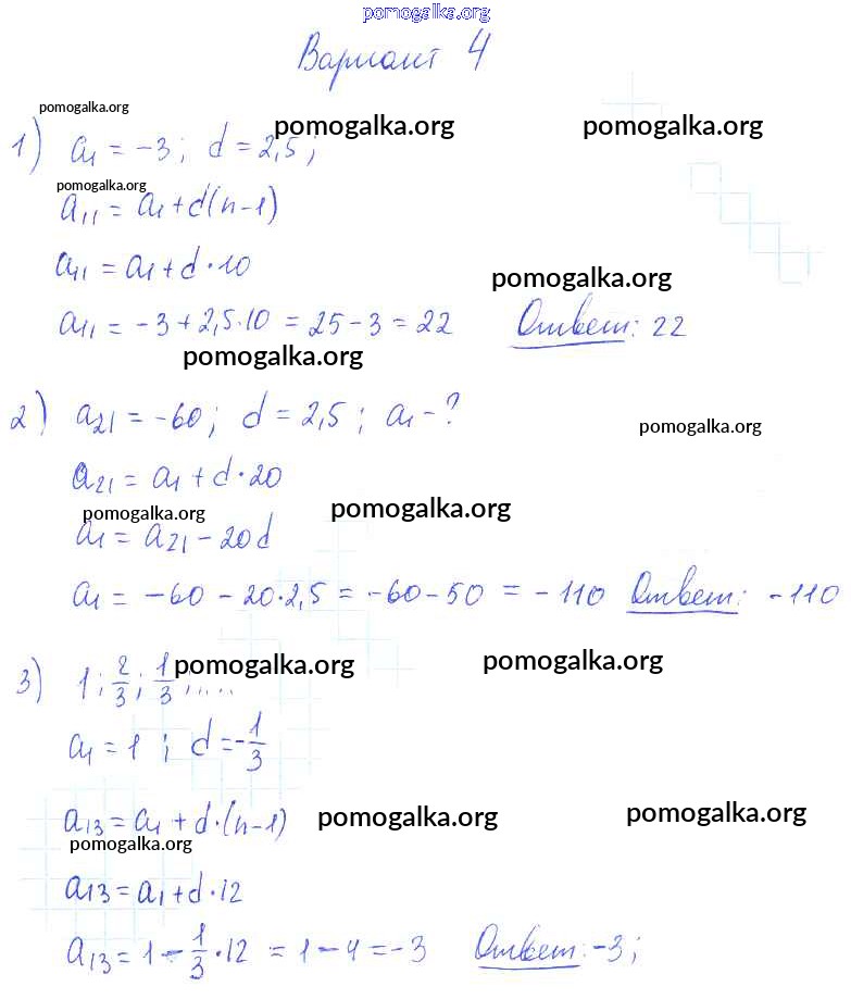 Тема 4. Прогрессии. Самостоятельные работы 21-26