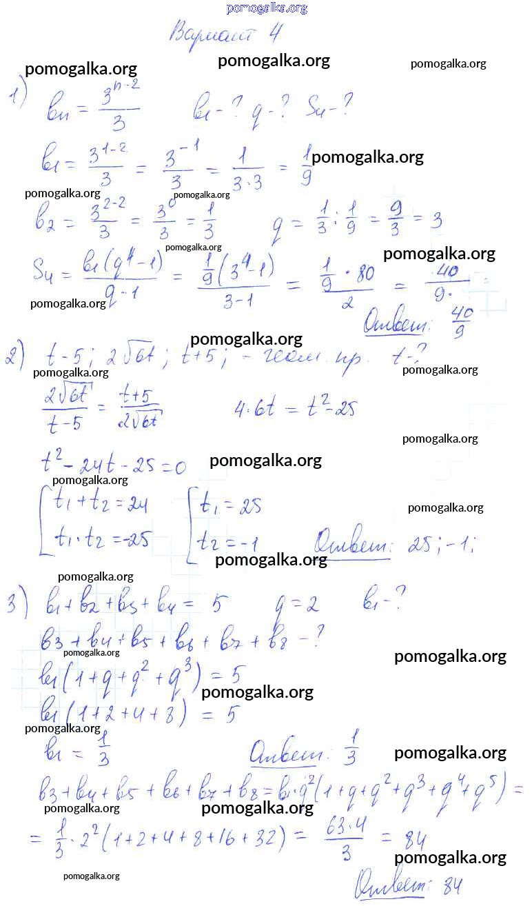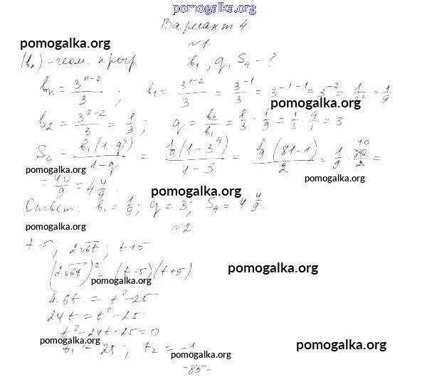 Готовые ответы - Алгебра 9 класс самостоятельные работы Александрова Л.А. (к уч. Мордковича) - ср-26 тема 4 вариант 4