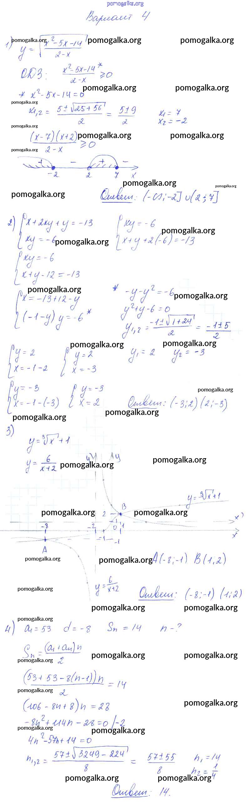 Готовые ответы - Алгебра 9 класс самостоятельные работы Александрова Л.А. (к уч. Мордковича) - ср-34 тема 5 вариант 4