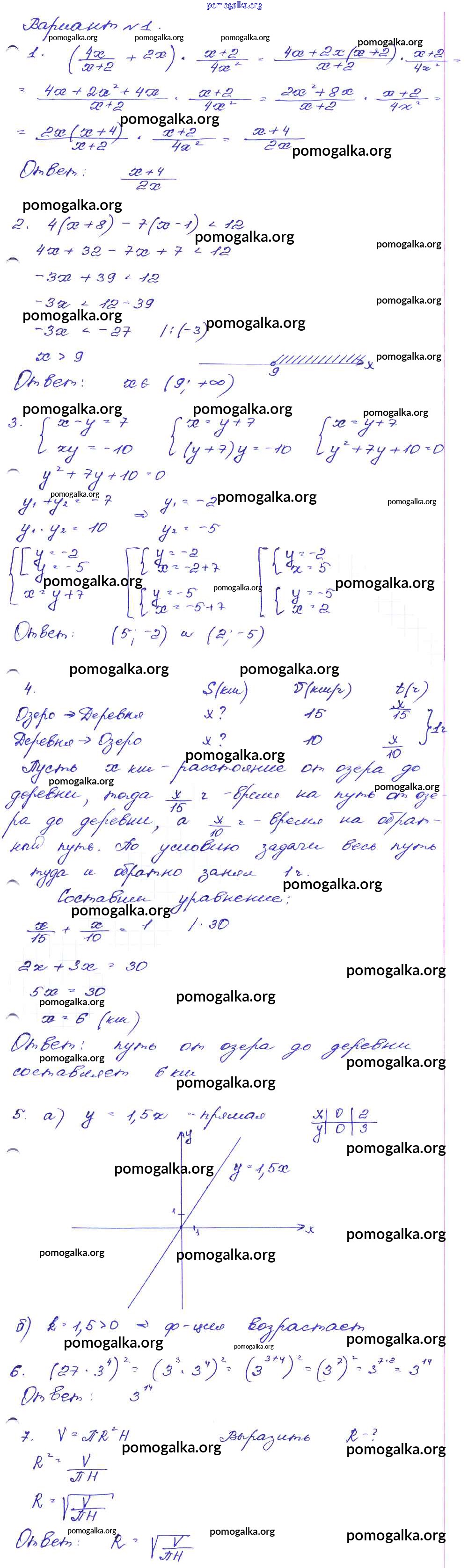 Готовые ответы - Алгебра 9 класс сборник заданий Кузнецова Л.В. - работа 15 часть 1 Вариант-1