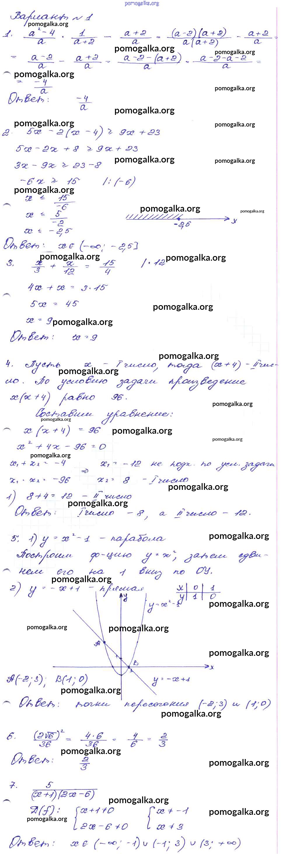 Готовые ответы - Алгебра 9 класс сборник заданий Кузнецова Л.В. - работа 18 часть 1 Вариант-1