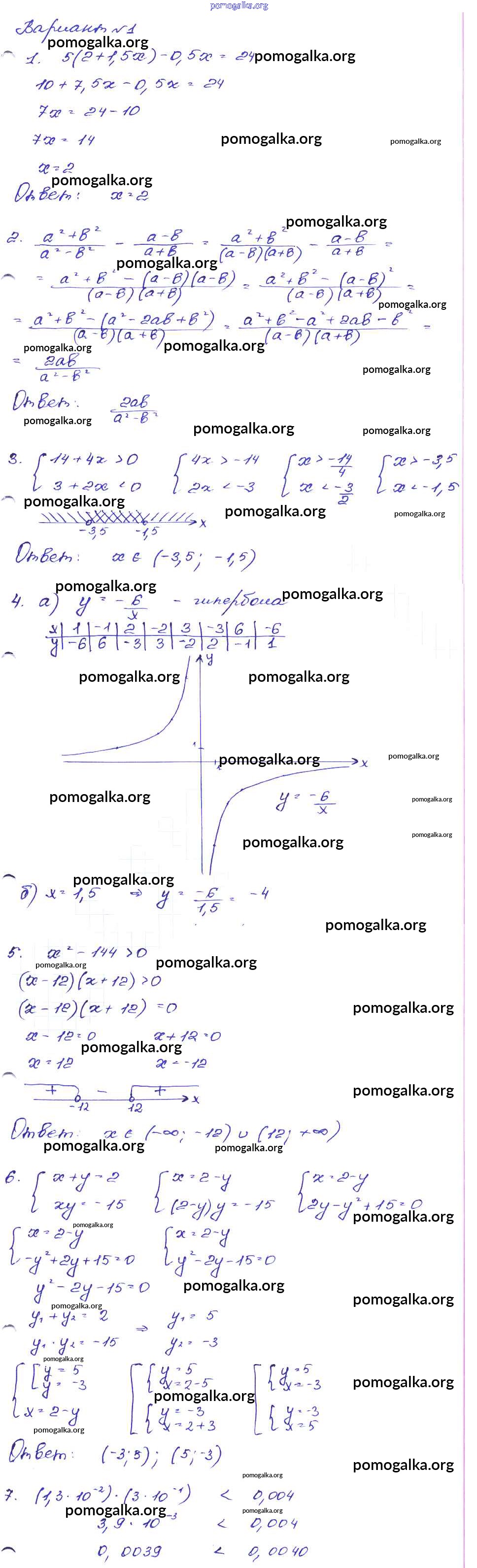 Готовые ответы - Алгебра 9 класс сборник заданий Кузнецова Л.В. - работа 26 часть 1 Вариант-1