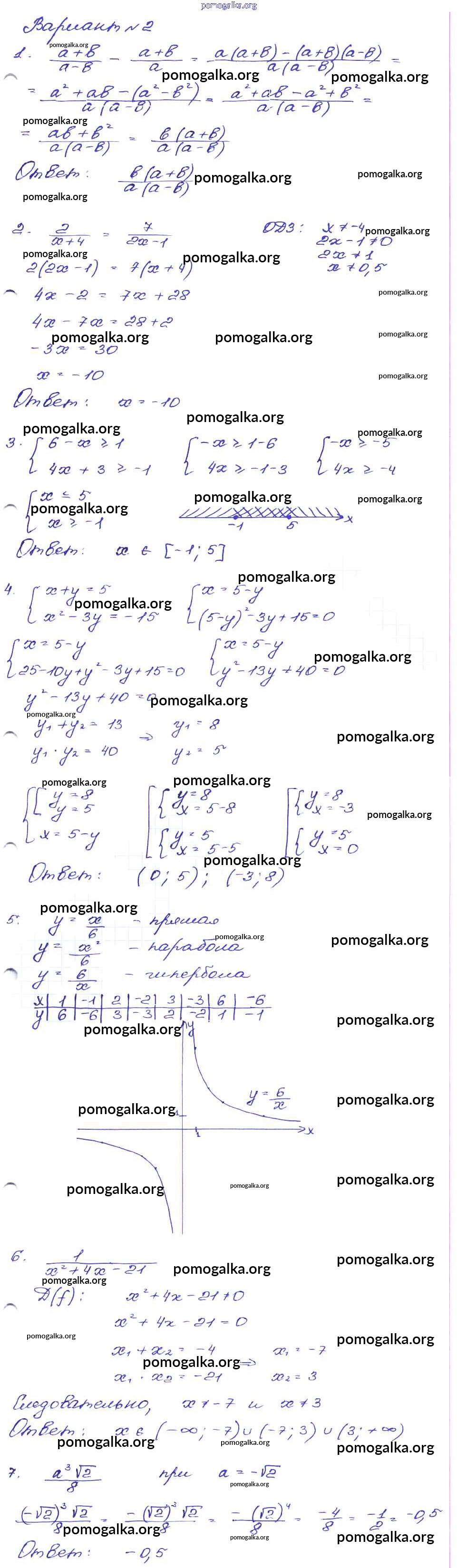 Готовые ответы - Алгебра 9 класс сборник заданий Кузнецова Л.В. - работа 30 часть 1 Вариант-2
