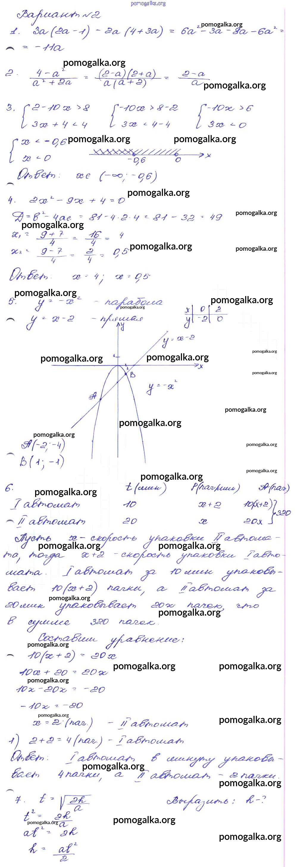 Готовые ответы - Алгебра 9 класс сборник заданий Кузнецова Л.В. - работа 48 часть 1 Вариант-2