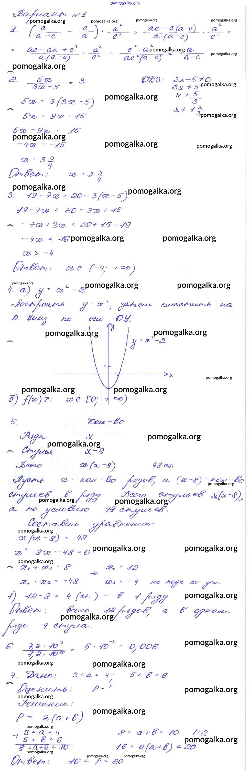 Готовые ответы - Алгебра 9 класс сборник заданий Кузнецова Л.В. - работа 57 часть 1 Вариант-1