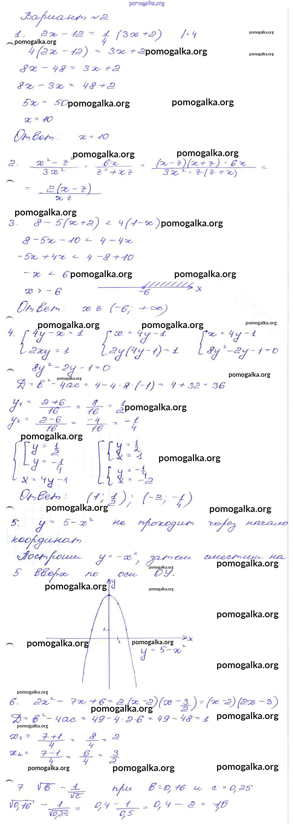 Готовые ответы - Алгебра 9 класс сборник заданий Кузнецова Л.В. - работа 71 часть 1 Вариант-2
