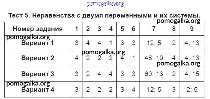 Готовые ответы - Алгебра 9 класс Тематические тесты Дудницын Ю.П. - тест Тест 5. Неравенства с двумя переменными и их системы