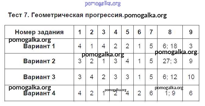 Готовые ответы - Алгебра 9 класс Тематические тесты Дудницын Ю.П. - тест Тест 7. Геометрическая прогрессия