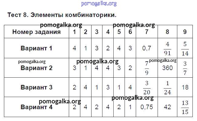 Готовые ответы - Алгебра 9 класс Тематические тесты Дудницын Ю.П. - тест Тест 8. Элементы комбинаторики