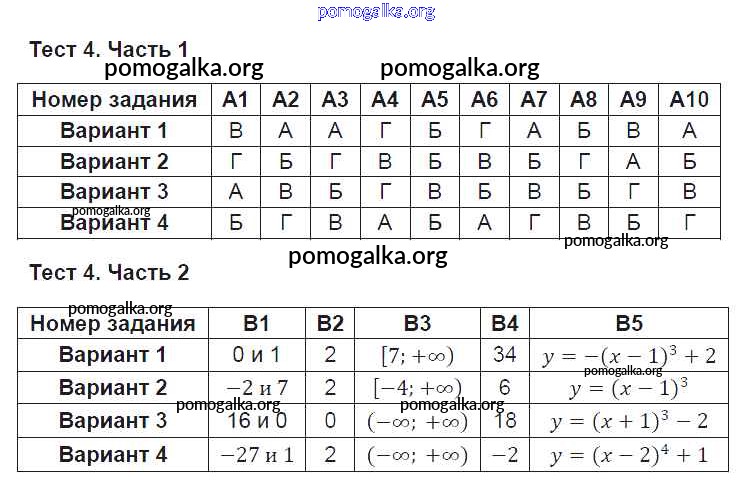Готовые ответы - Алгебра 9 класс Тесты Ключникова Е.М. (к уч. Мордковича) - тест 4