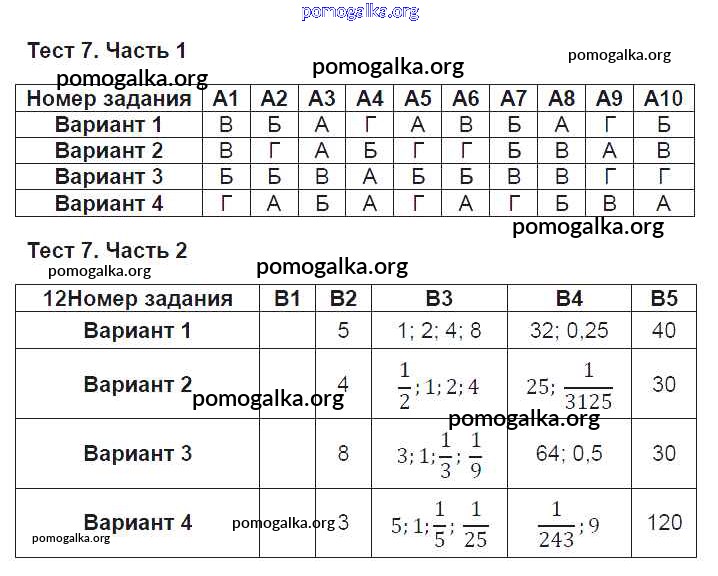 Готовые ответы - Алгебра 9 класс Тесты Ключникова Е.М. (к уч. Мордковича) - тест 7