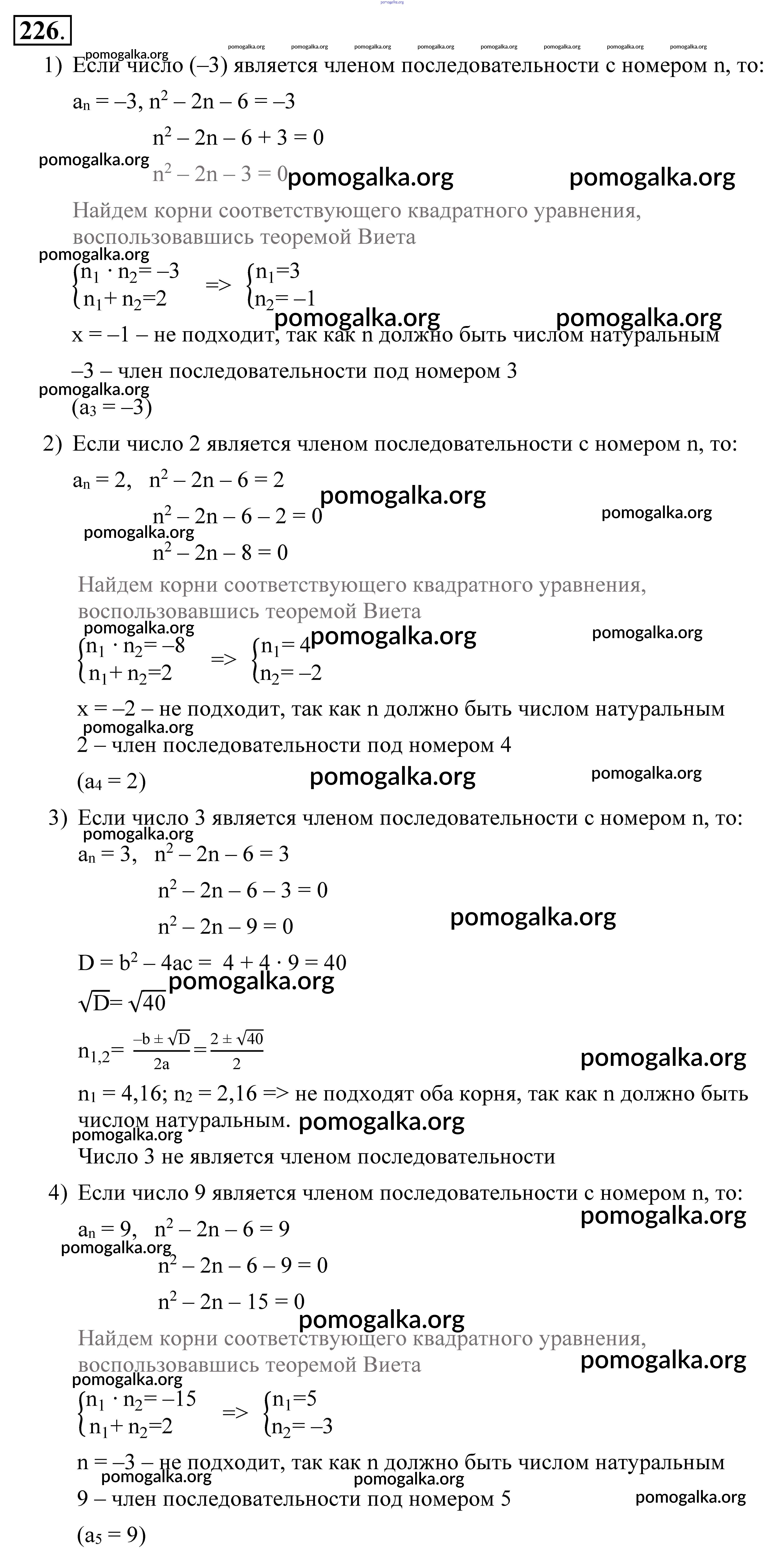 Готовые ответы - Алгебра 9 класс Алимов Ш. А. - упражнение 226
