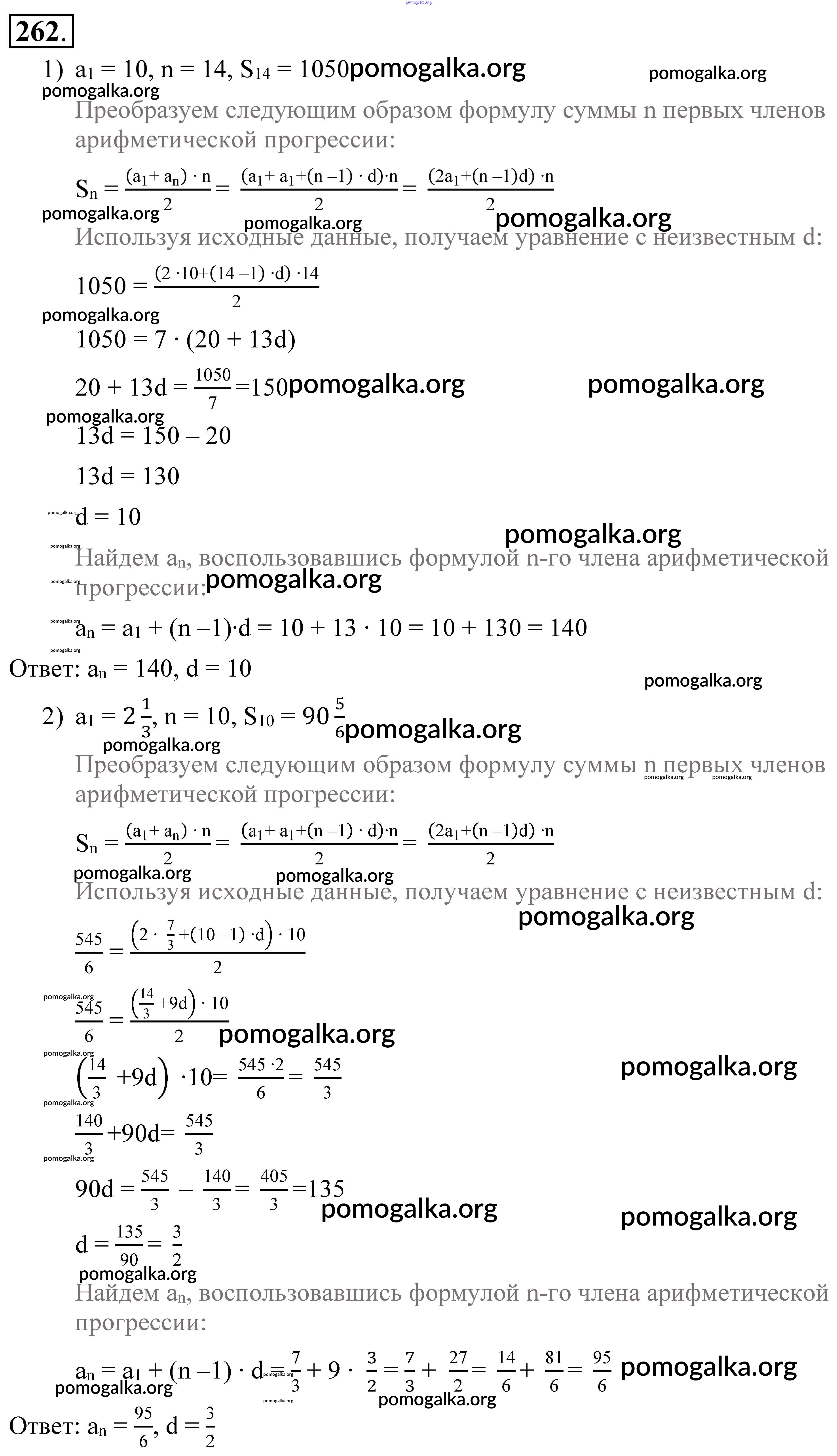 Готовые ответы - Алгебра 9 класс Алимов Ш. А. - упражнение 262