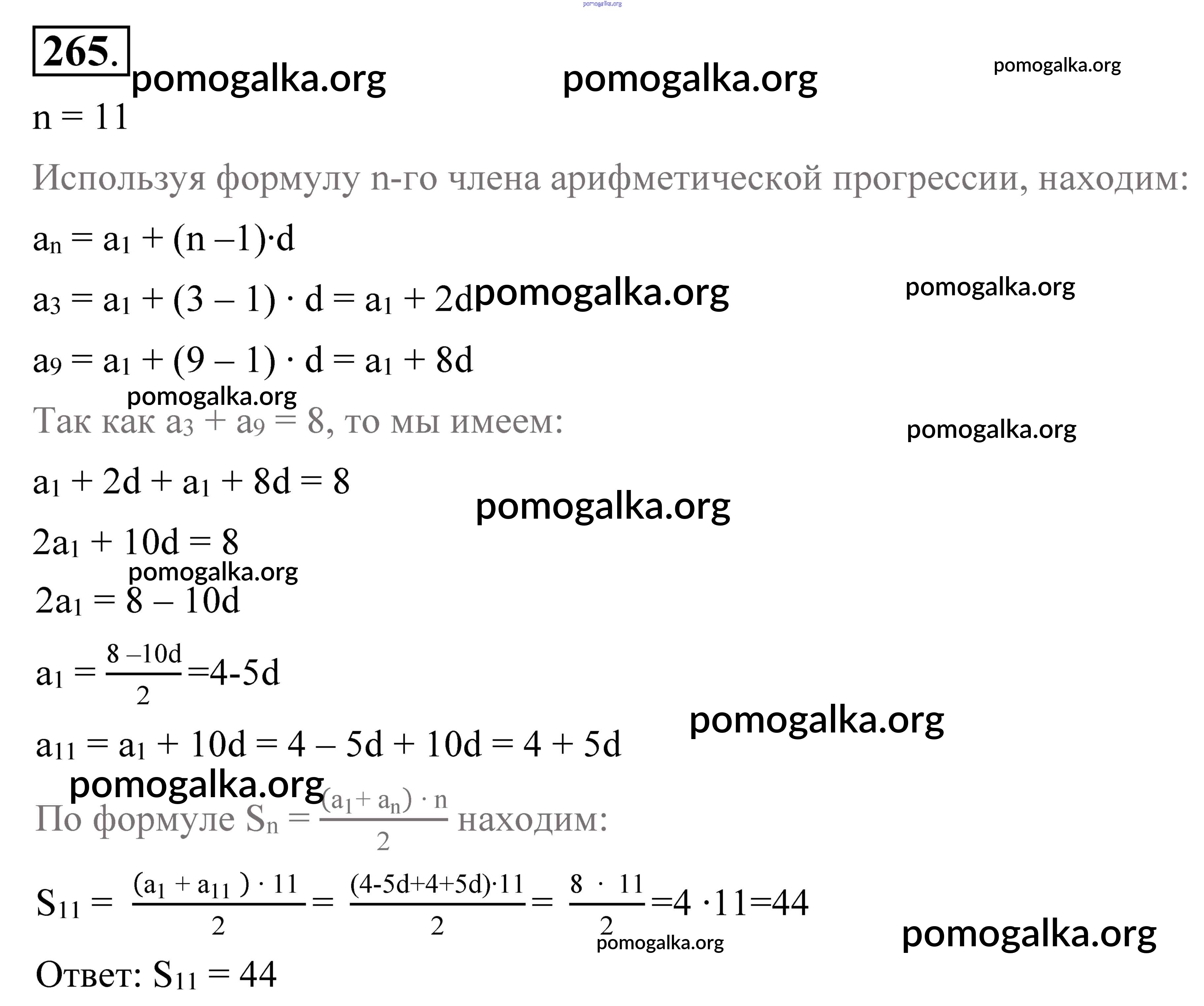 Готовые ответы - Алгебра 9 класс Алимов Ш. А. - упражнение 265