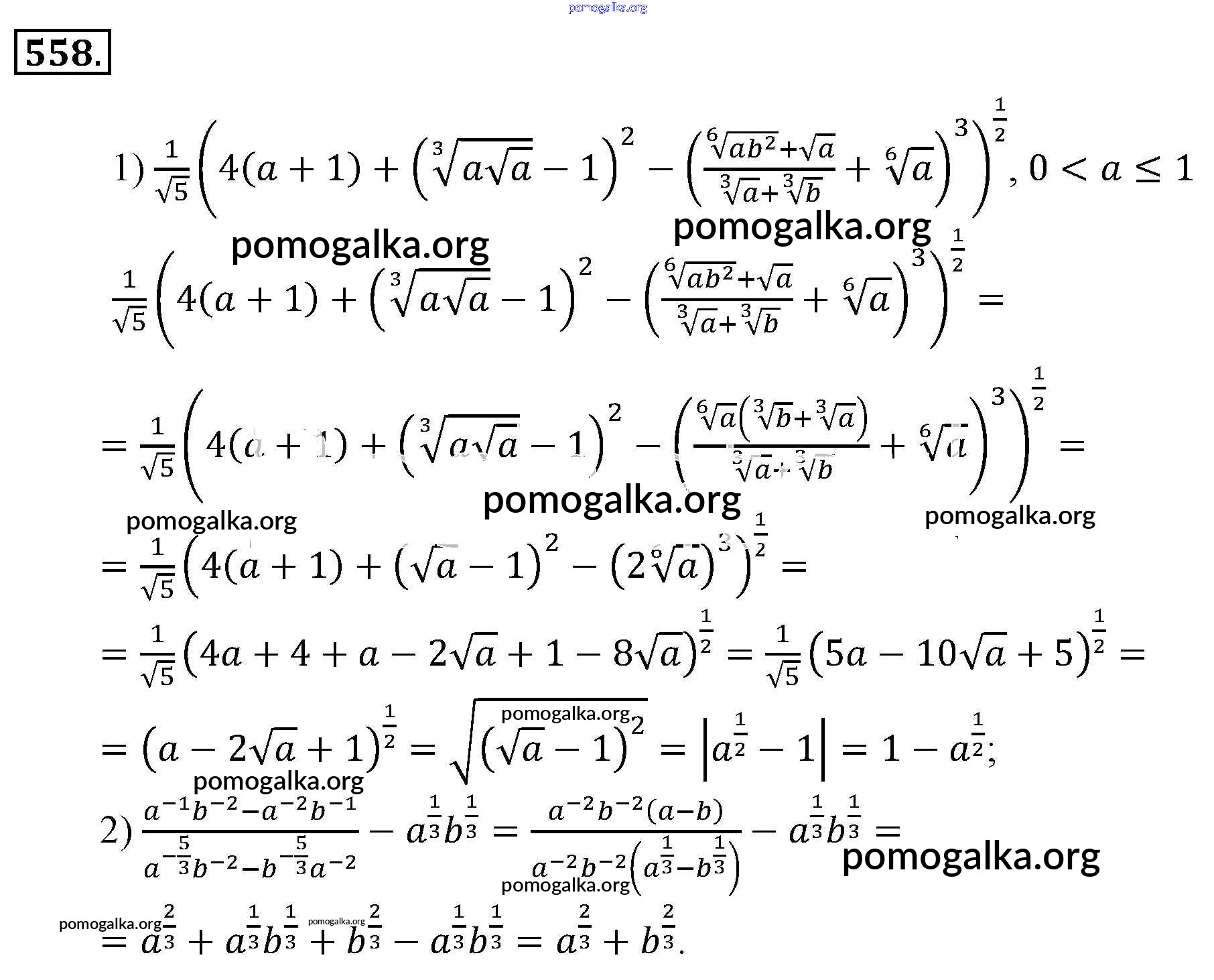 Готовые ответы - Алгебра 9 класс Алимов Ш. А. - упражнение 558