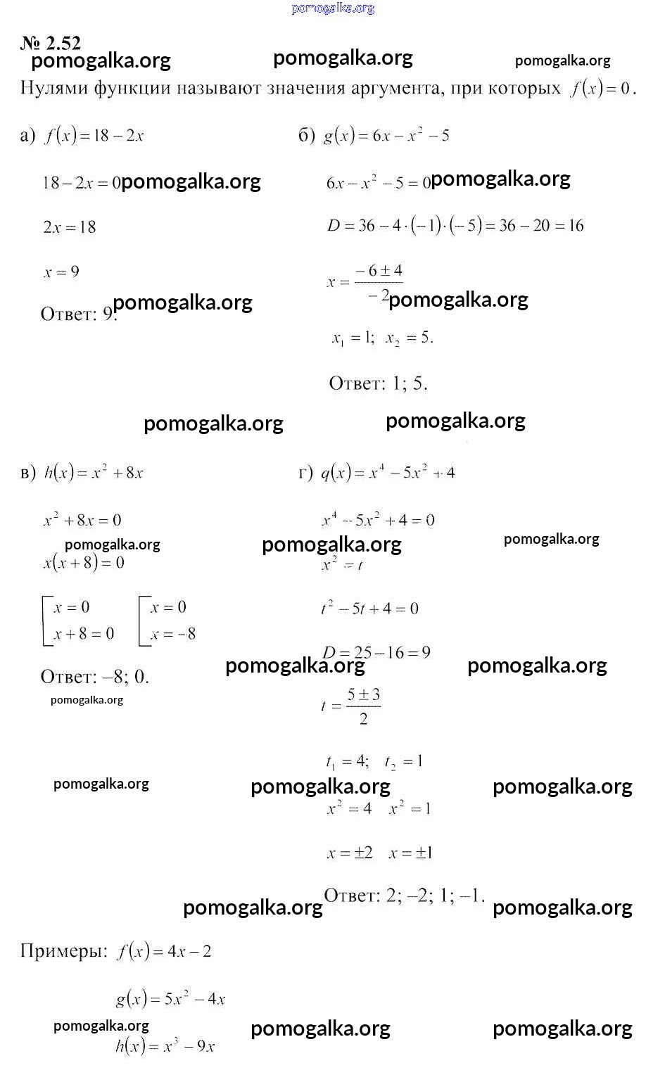 Готовые ответы - Алгебра 9 класс Арефьева И.Г. - задание глава 2 2.52