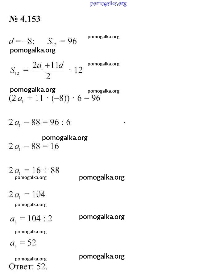 Готовые ответы - Алгебра 9 класс Арефьева И.Г. - задание глава 4 4.153