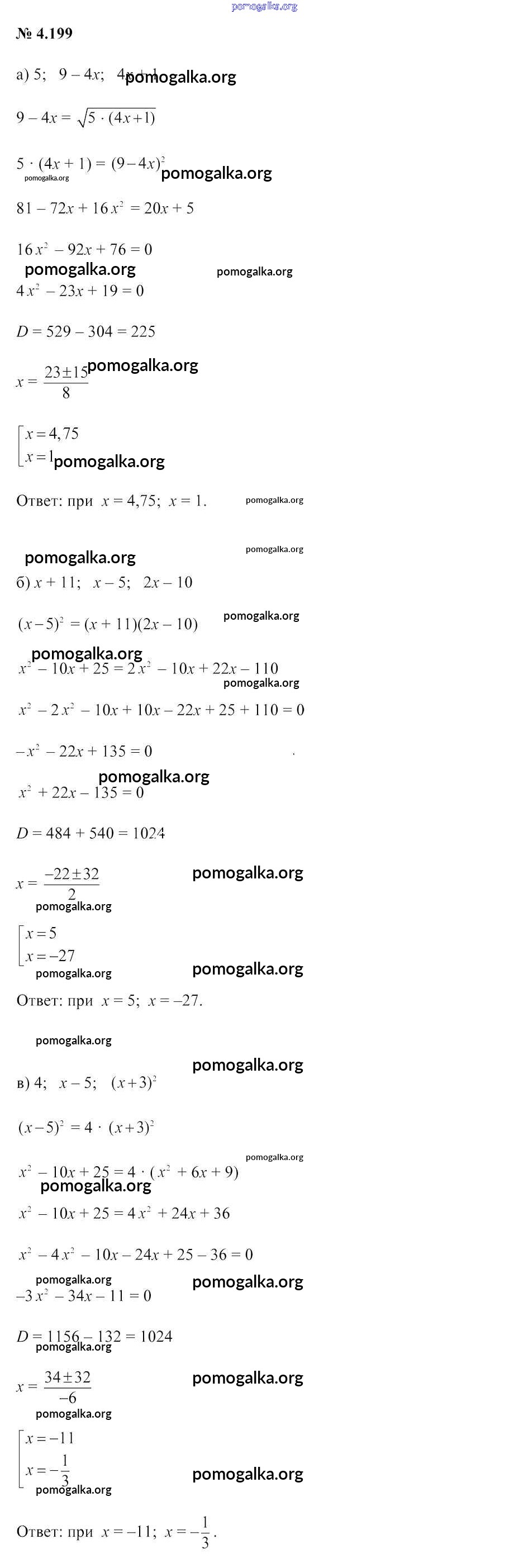 Готовые ответы - Алгебра 9 класс Арефьева И.Г. - задание глава 4 4.199