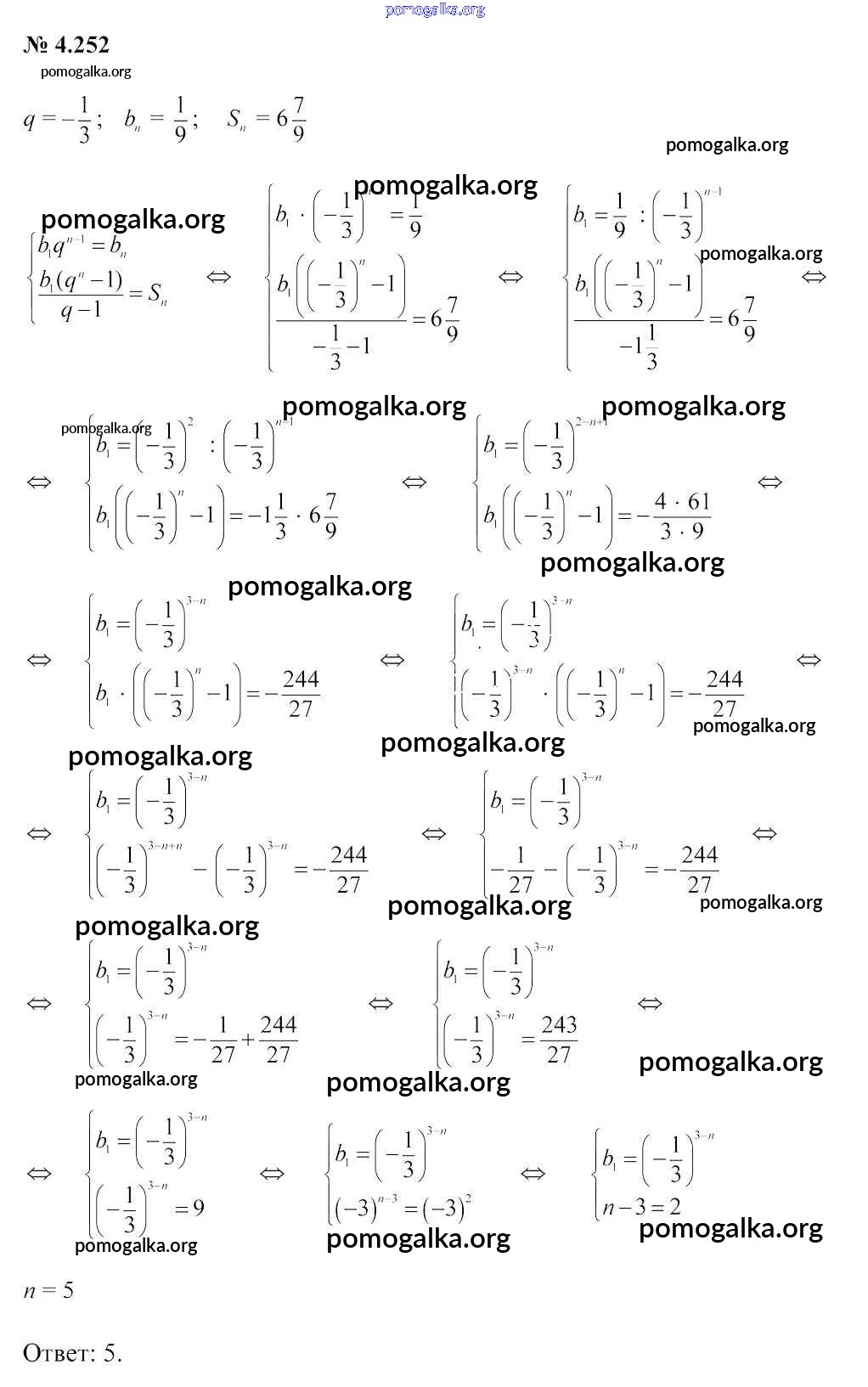 Готовые ответы - Алгебра 9 класс Арефьева И.Г. - задание глава 4 4.252