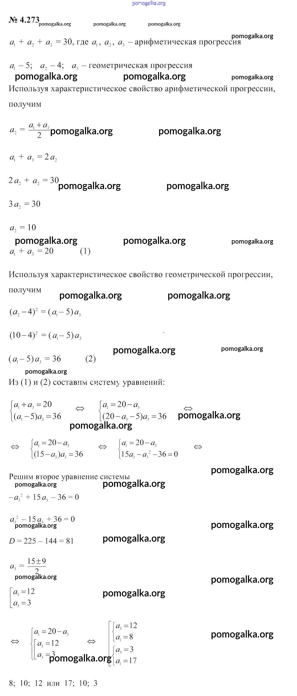 Готовые ответы - Алгебра 9 класс Арефьева И.Г. - задание глава 4 4.273