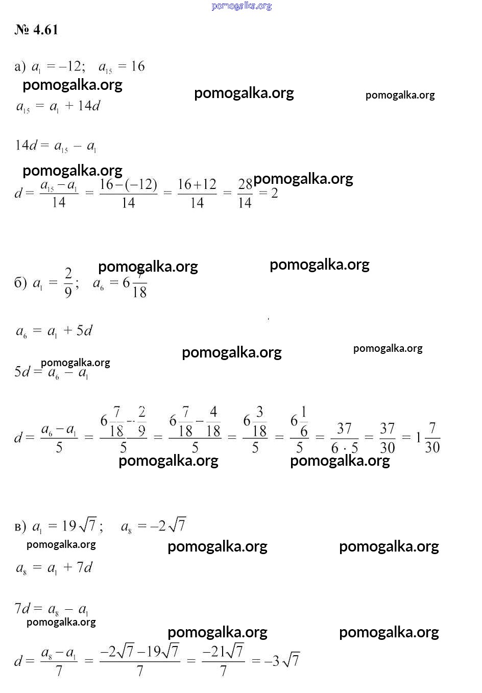 Готовые ответы - Алгебра 9 класс Арефьева И.Г. - задание глава 4 4.61