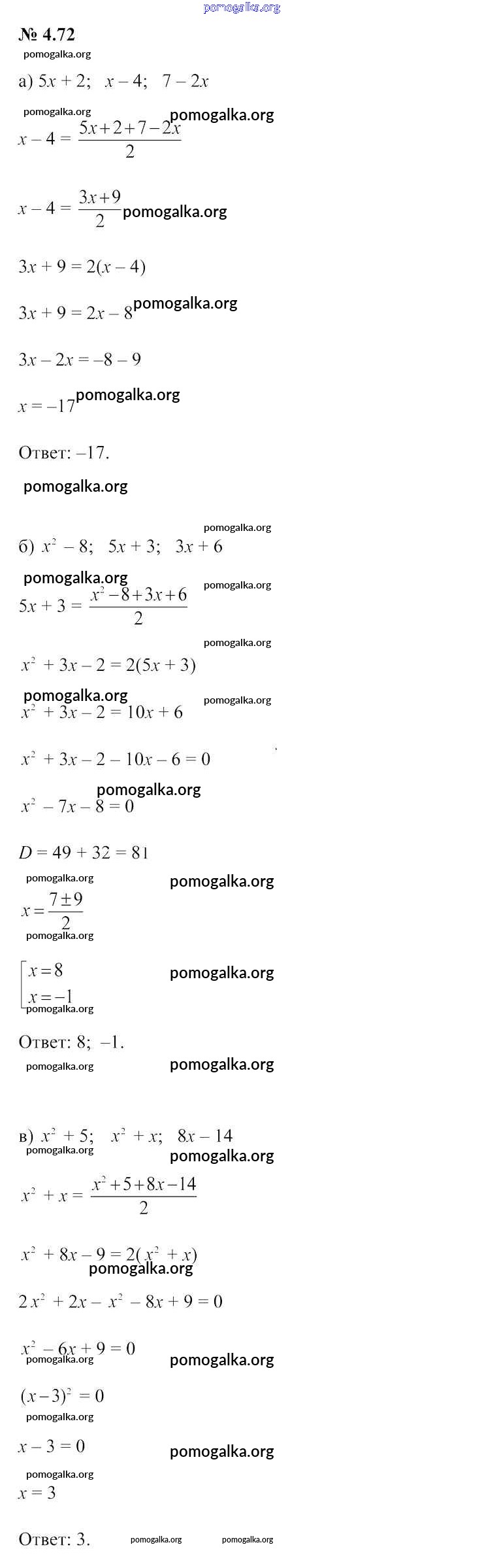Готовые ответы - Алгебра 9 класс Арефьева И.Г. - задание глава 4 4.72