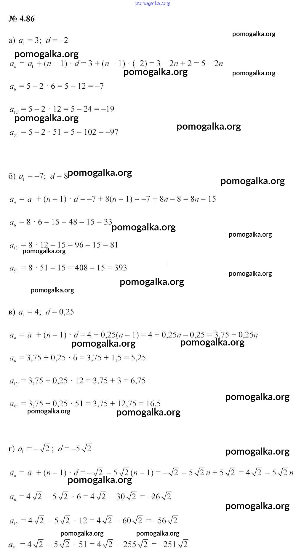 Готовые ответы - Алгебра 9 класс Арефьева И.Г. - задание глава 4 4.86