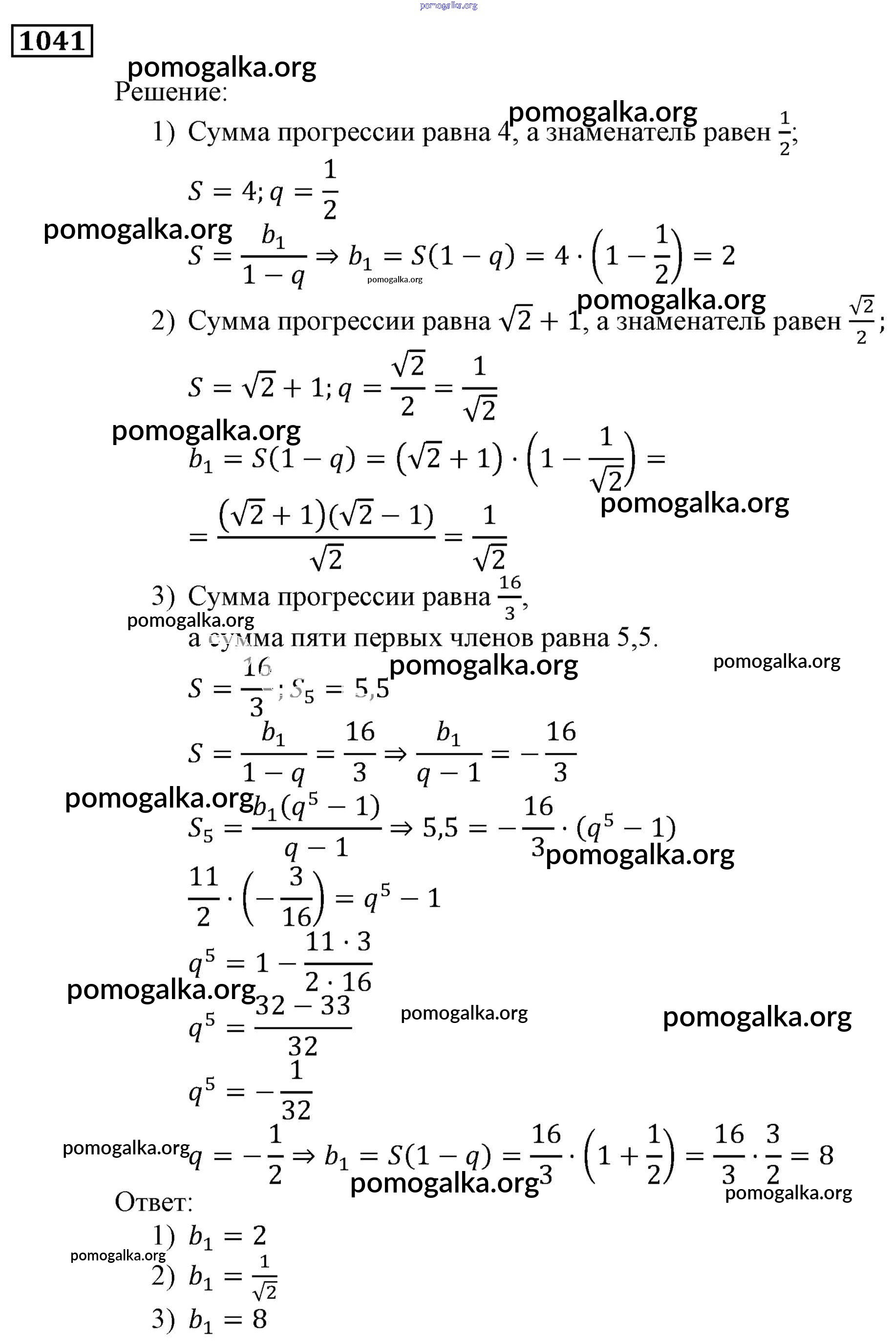Готовые ответы - Алгебра 9 класс Мерзляк, Полонский - упражнение 1041