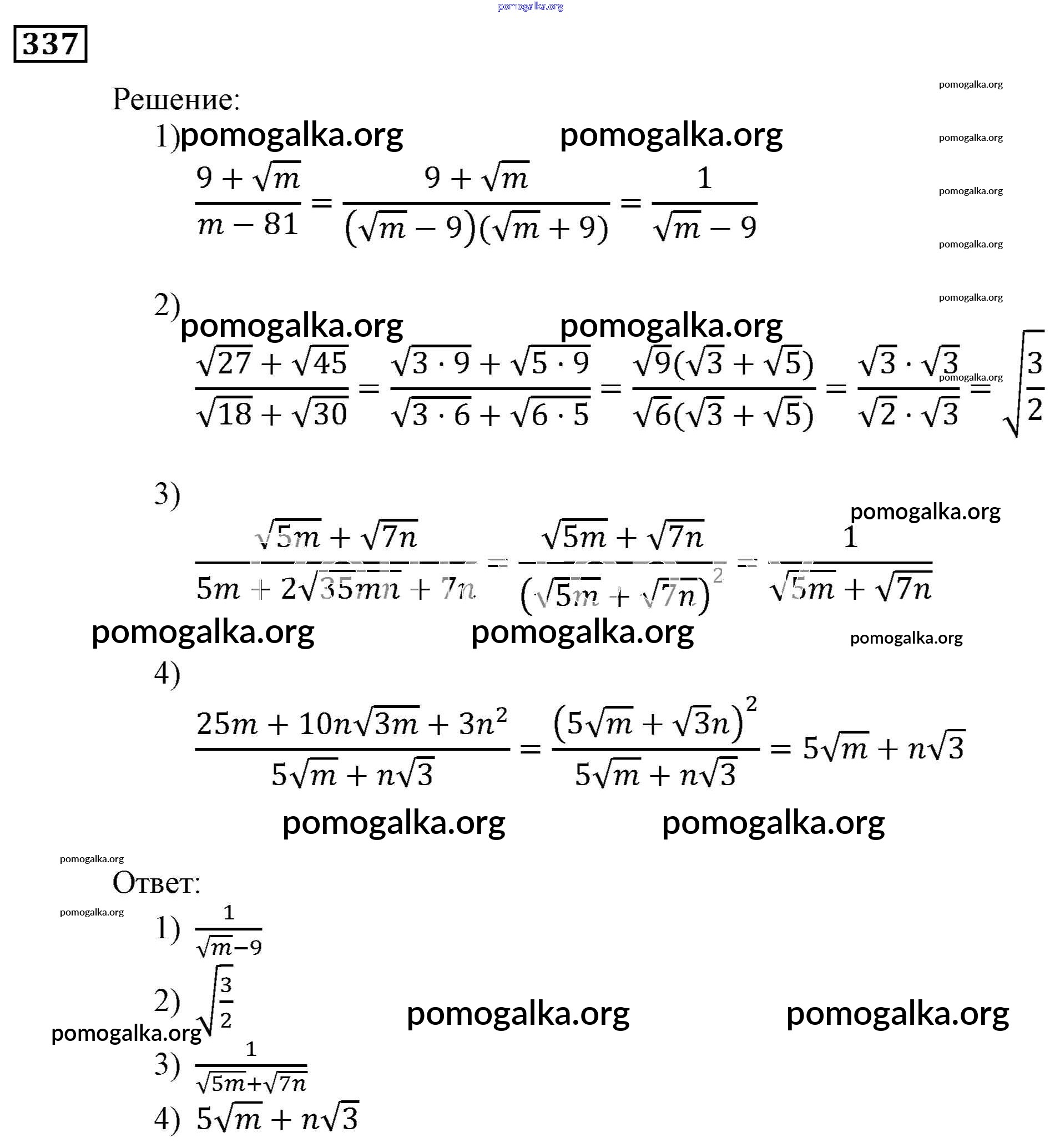 Готовые ответы - Алгебра 9 класс Мерзляк, Полонский - упражнение 337