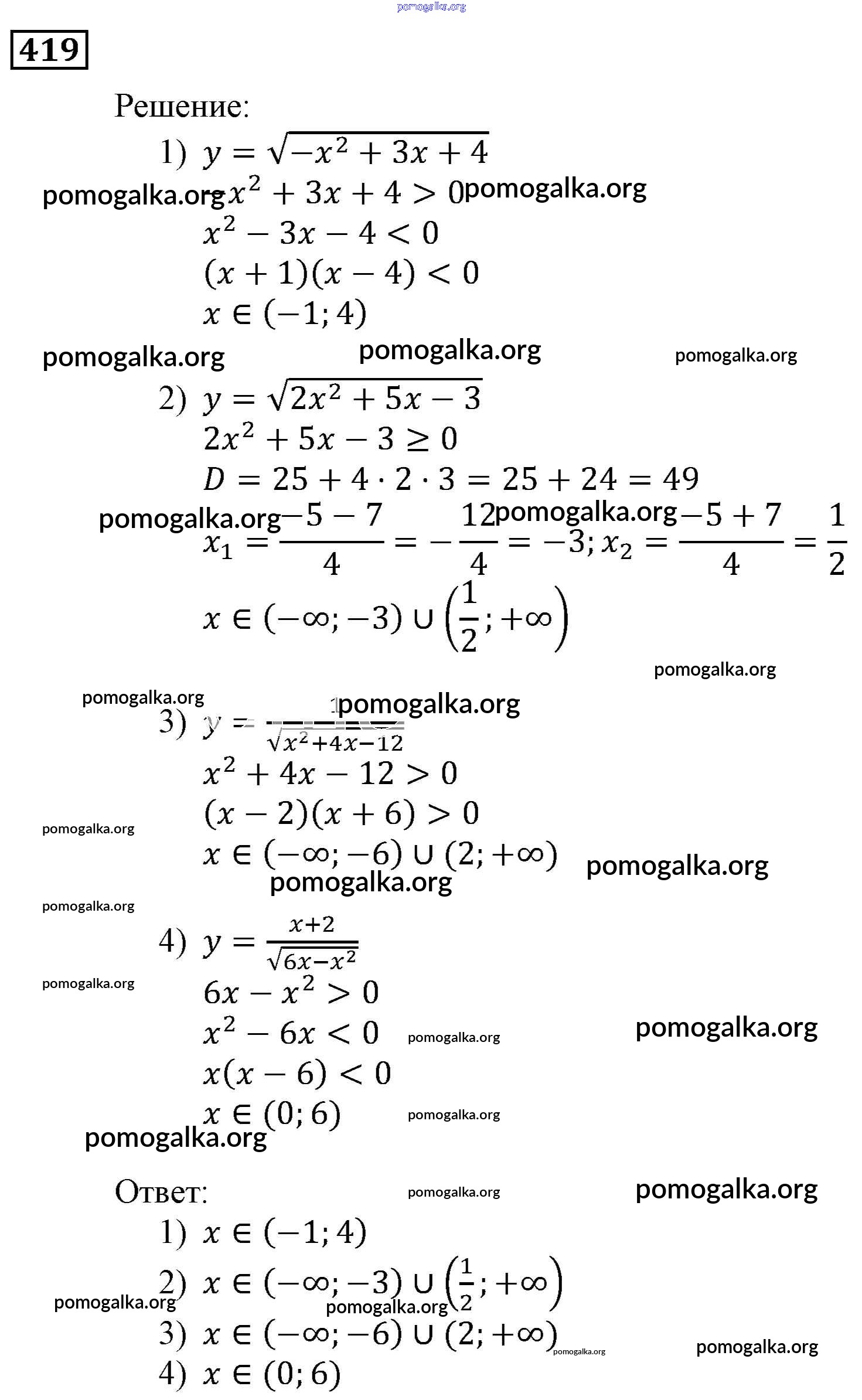 Готовые ответы - Алгебра 9 класс Мерзляк, Полонский - упражнение 419