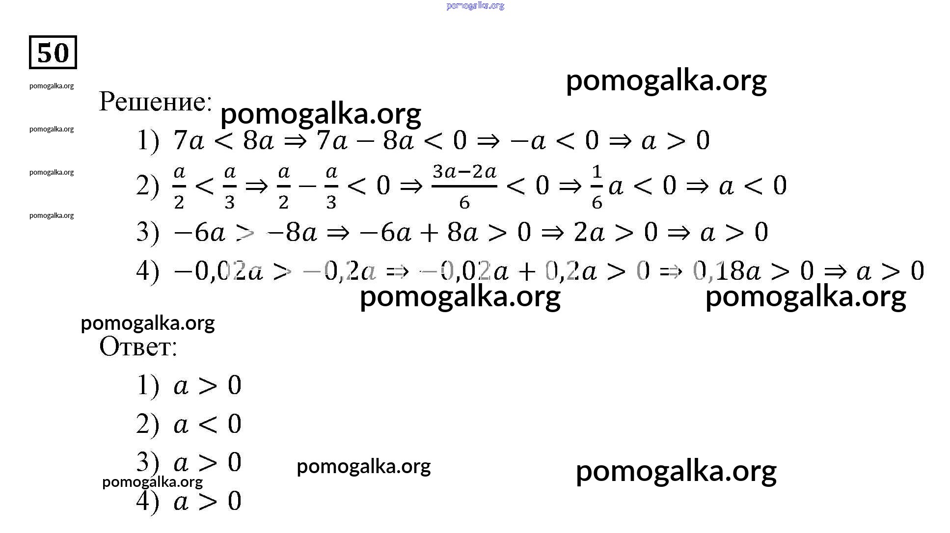 Готовые ответы - Алгебра 9 класс Мерзляк, Полонский - упражнение 50