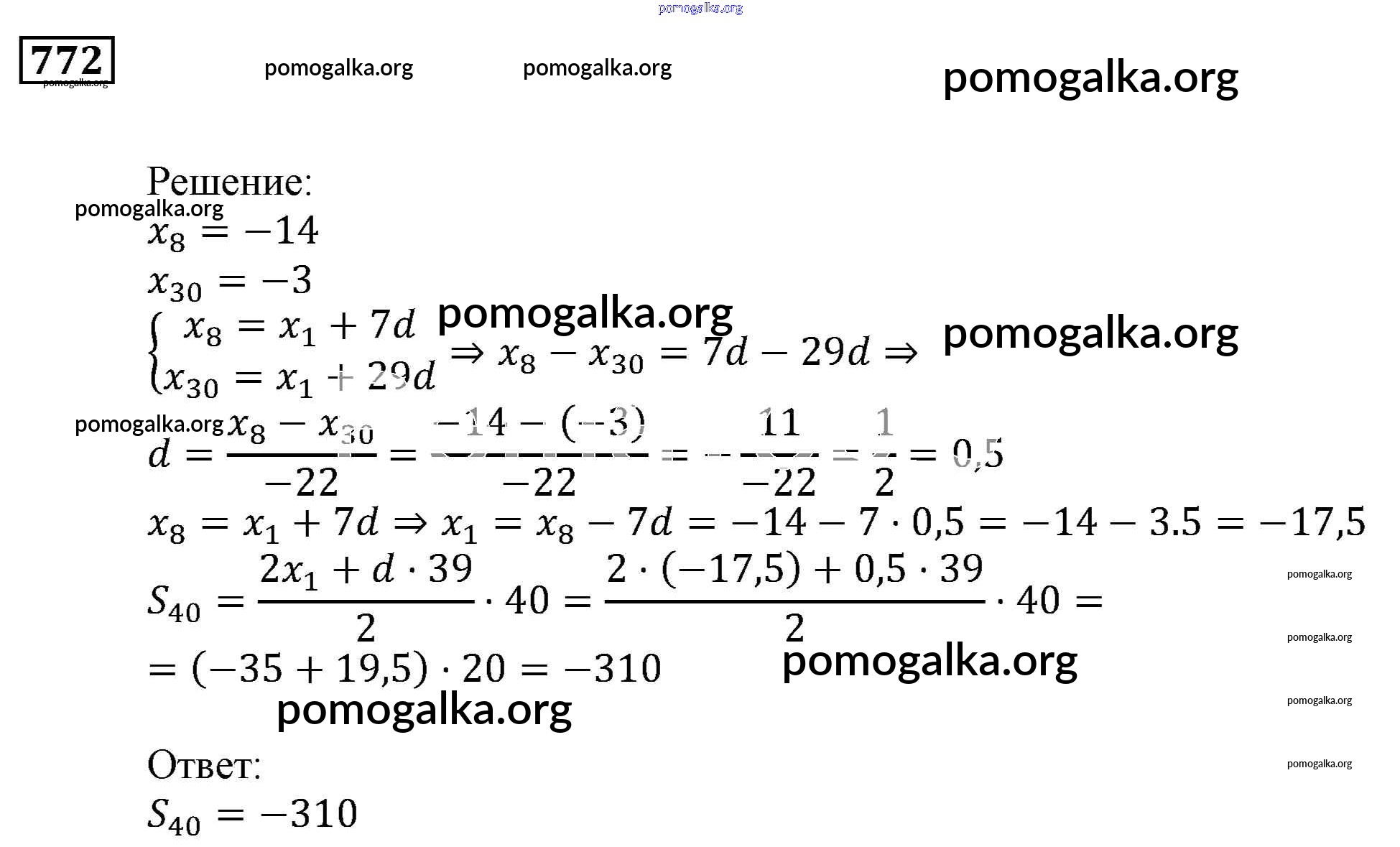 Готовые ответы - Алгебра 9 класс Мерзляк, Полонский - упражнение 772