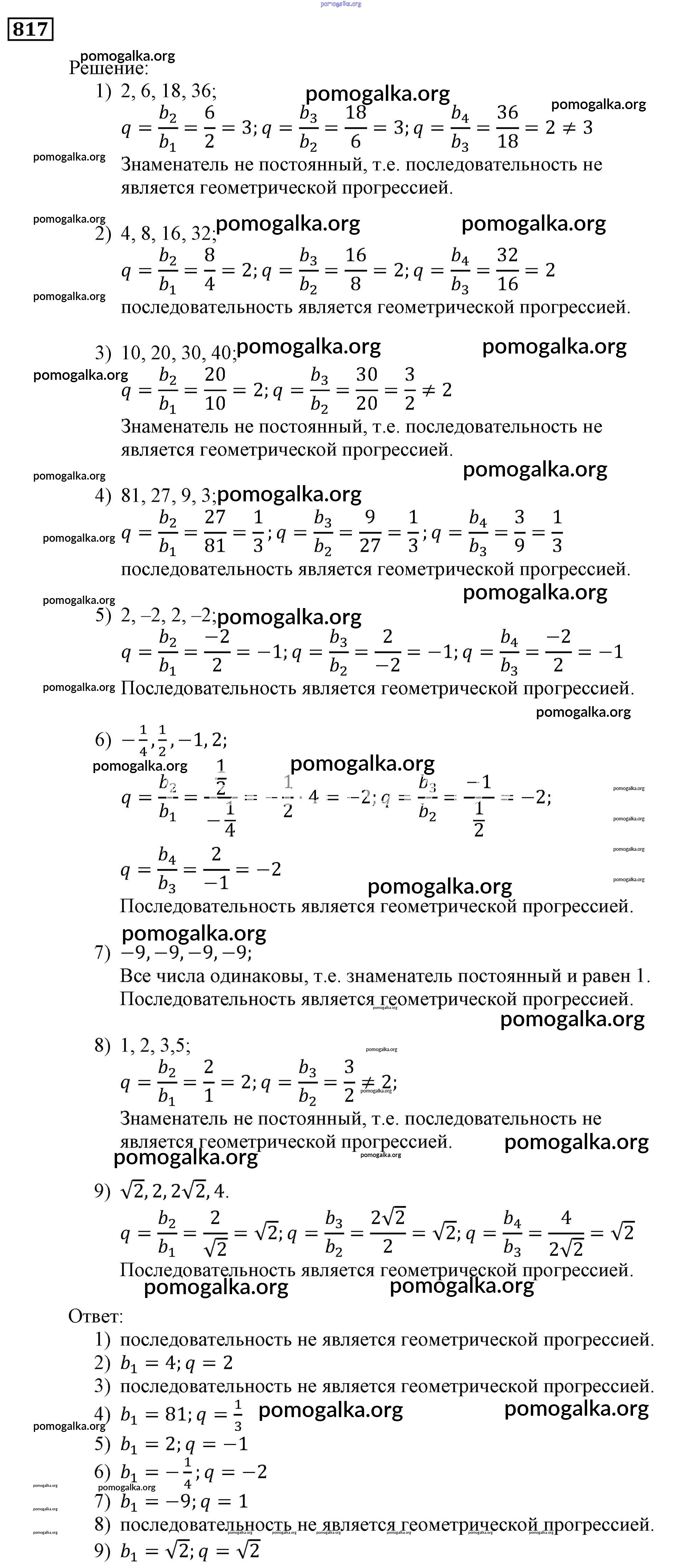 Готовые ответы - Алгебра 9 класс Мерзляк, Полонский - упражнение 817
