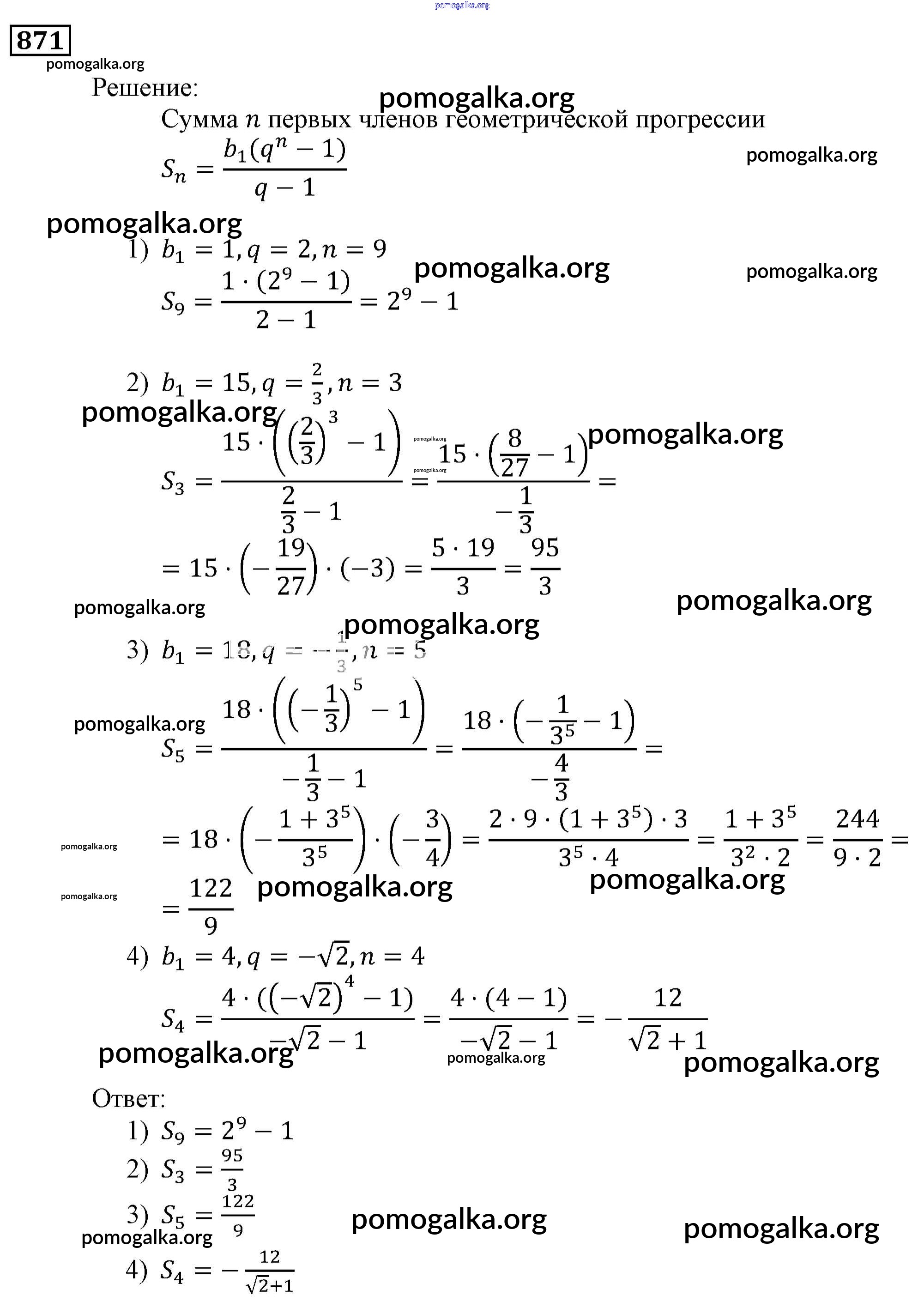 Готовые ответы - Алгебра 9 класс Мерзляк, Полонский - упражнение 871