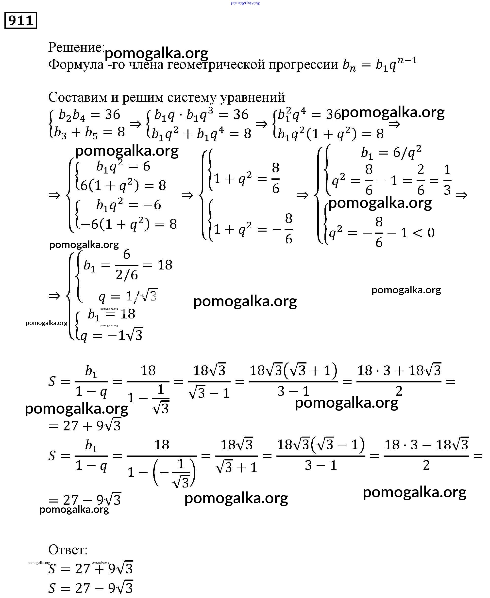 Готовые ответы - Алгебра 9 класс Мерзляк, Полонский - упражнение 911