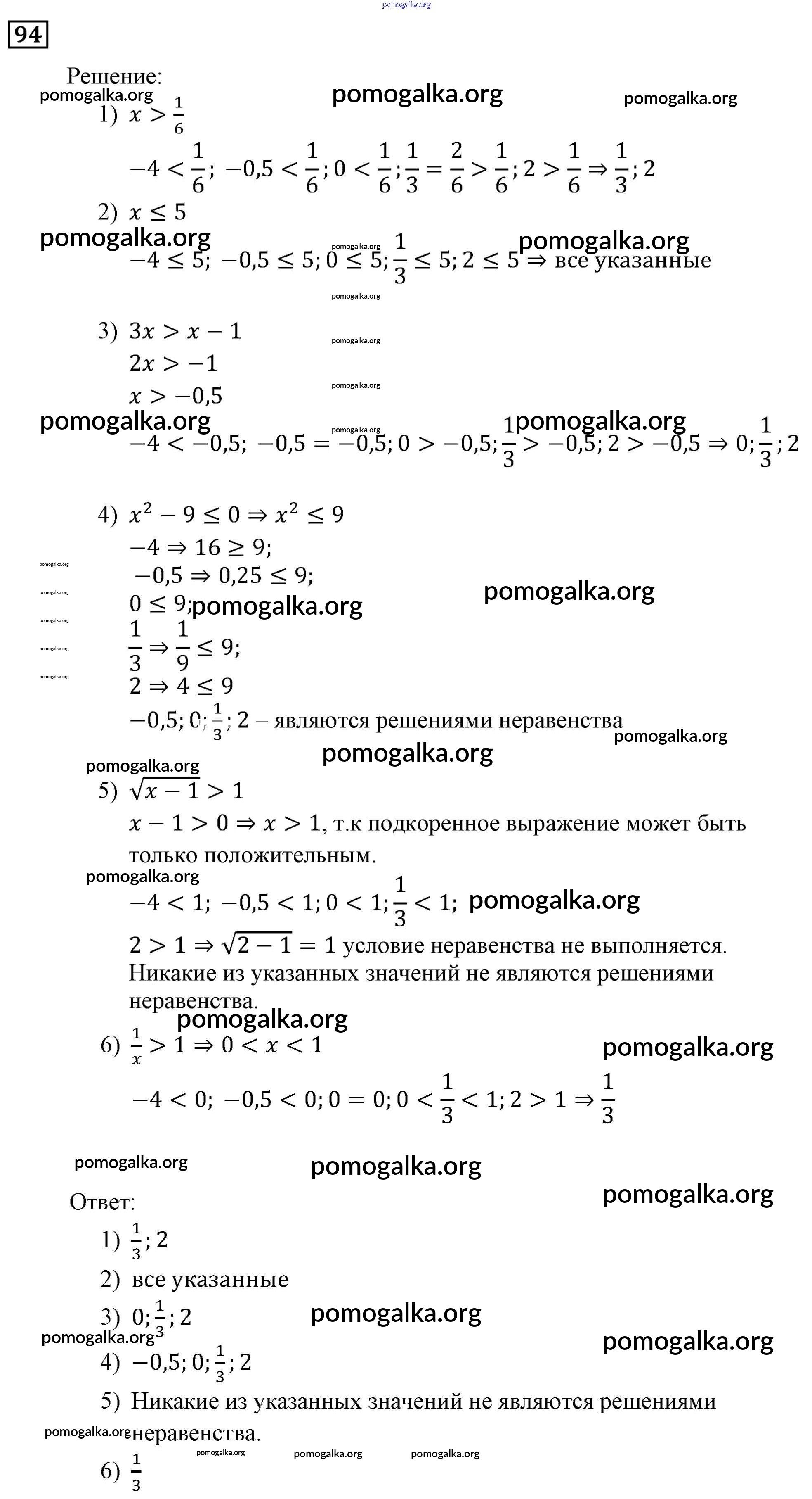Готовые ответы - Алгебра 9 класс Мерзляк, Полонский - упражнение 94