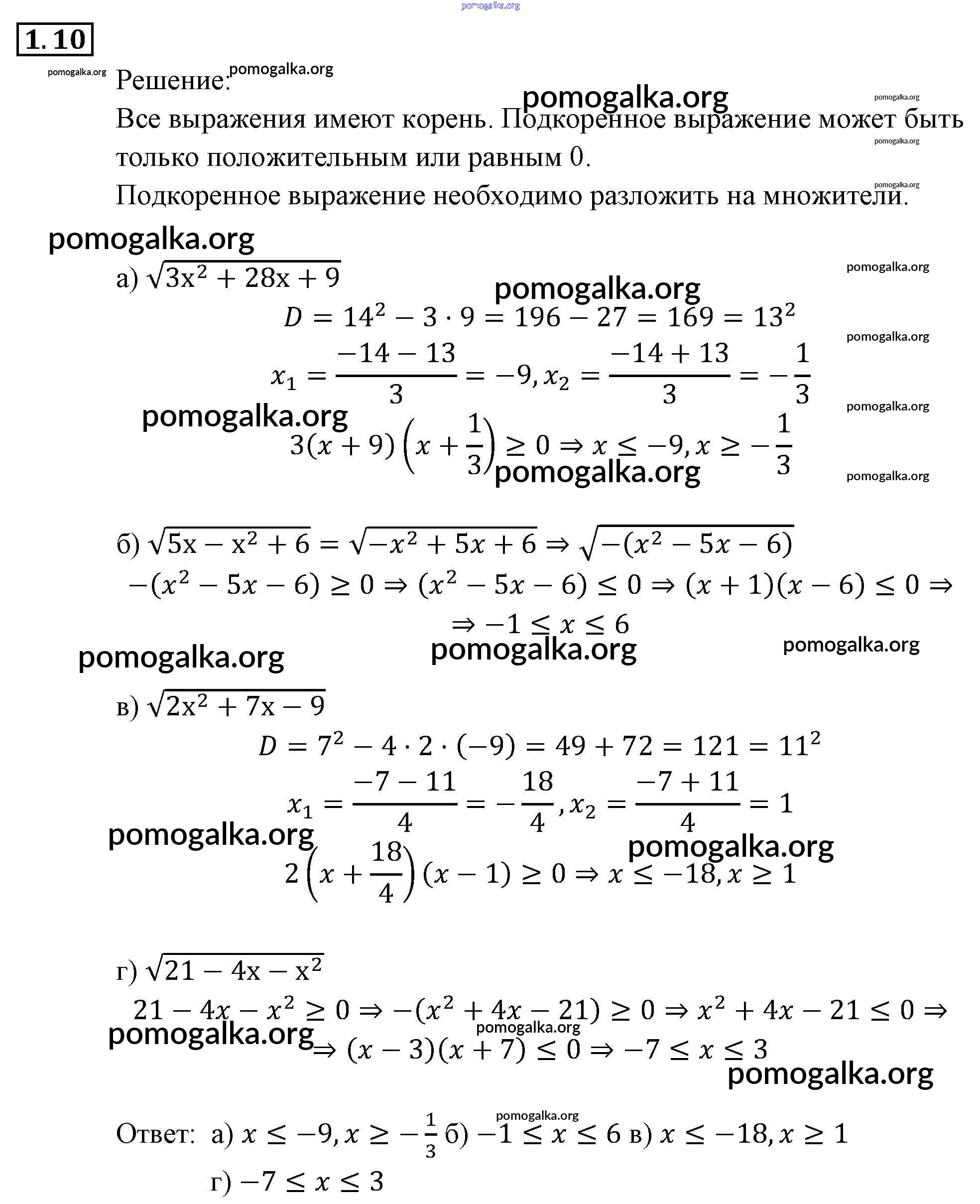Готовые ответы - Алгебра 9 класс Задачник Мордкович А.Г. (часть 2) - § 1 глава 1 10