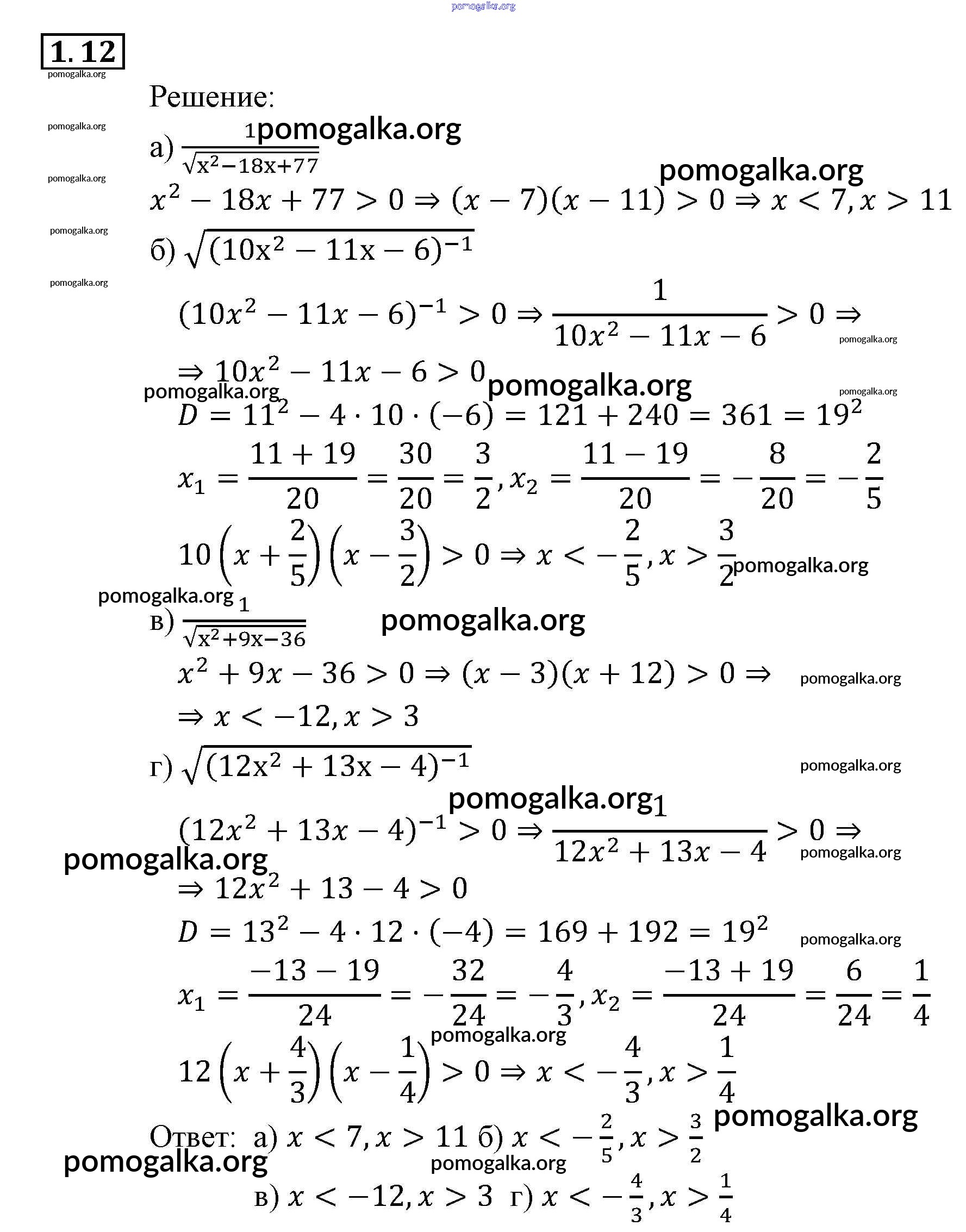 Готовые ответы - Алгебра 9 класс Задачник Мордкович А.Г. (часть 2) - § 1 глава 1 12