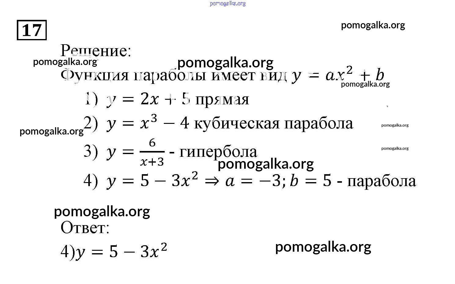 Готовые ответы - Алгебра 9 класс Задачник Мордкович А.Г. (часть 2) - функции и графики повторение 17