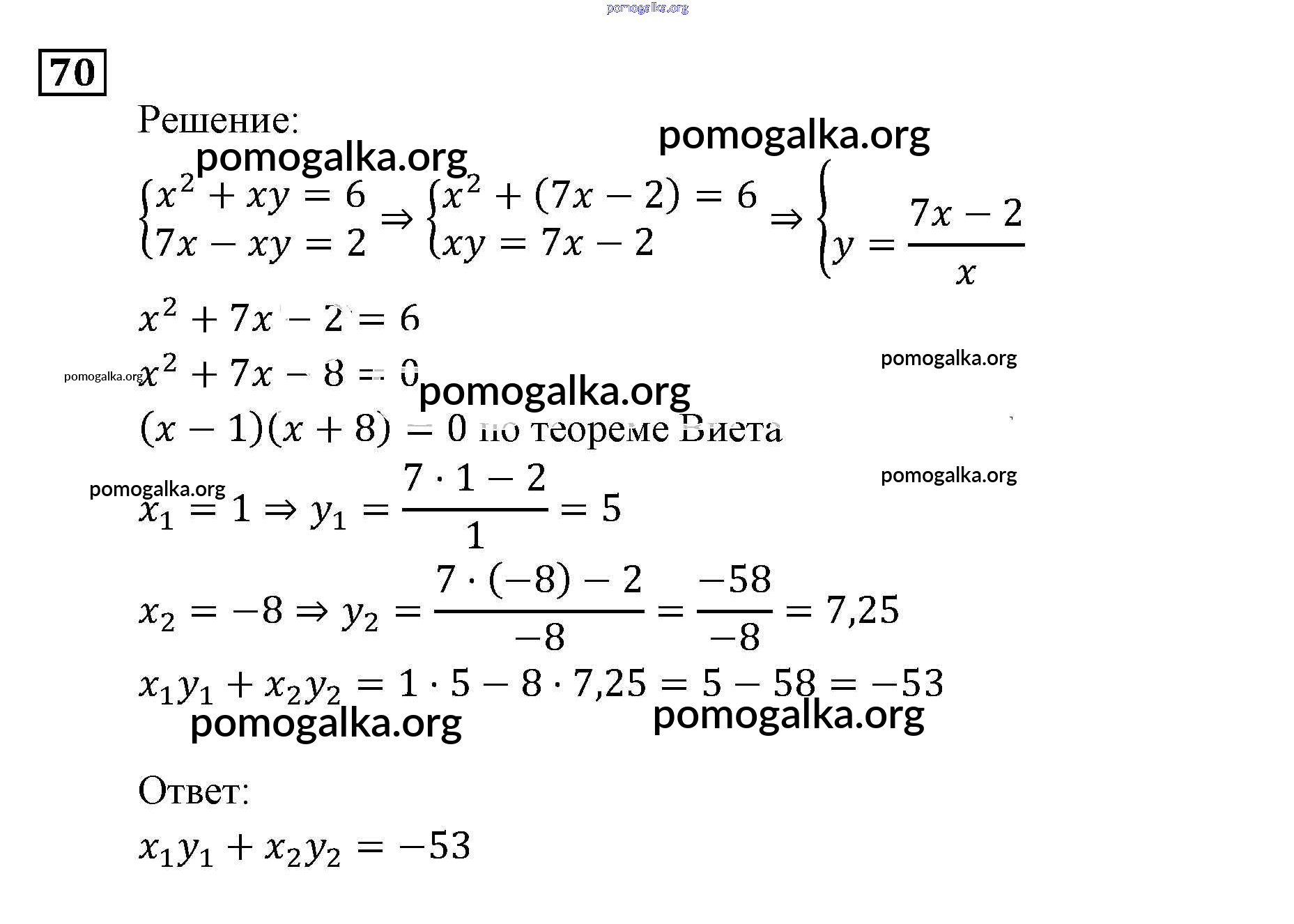 Готовые ответы - Алгебра 9 класс Задачник Мордкович А.Г. (часть 2) - уравнения и системы уравнений повторение 70