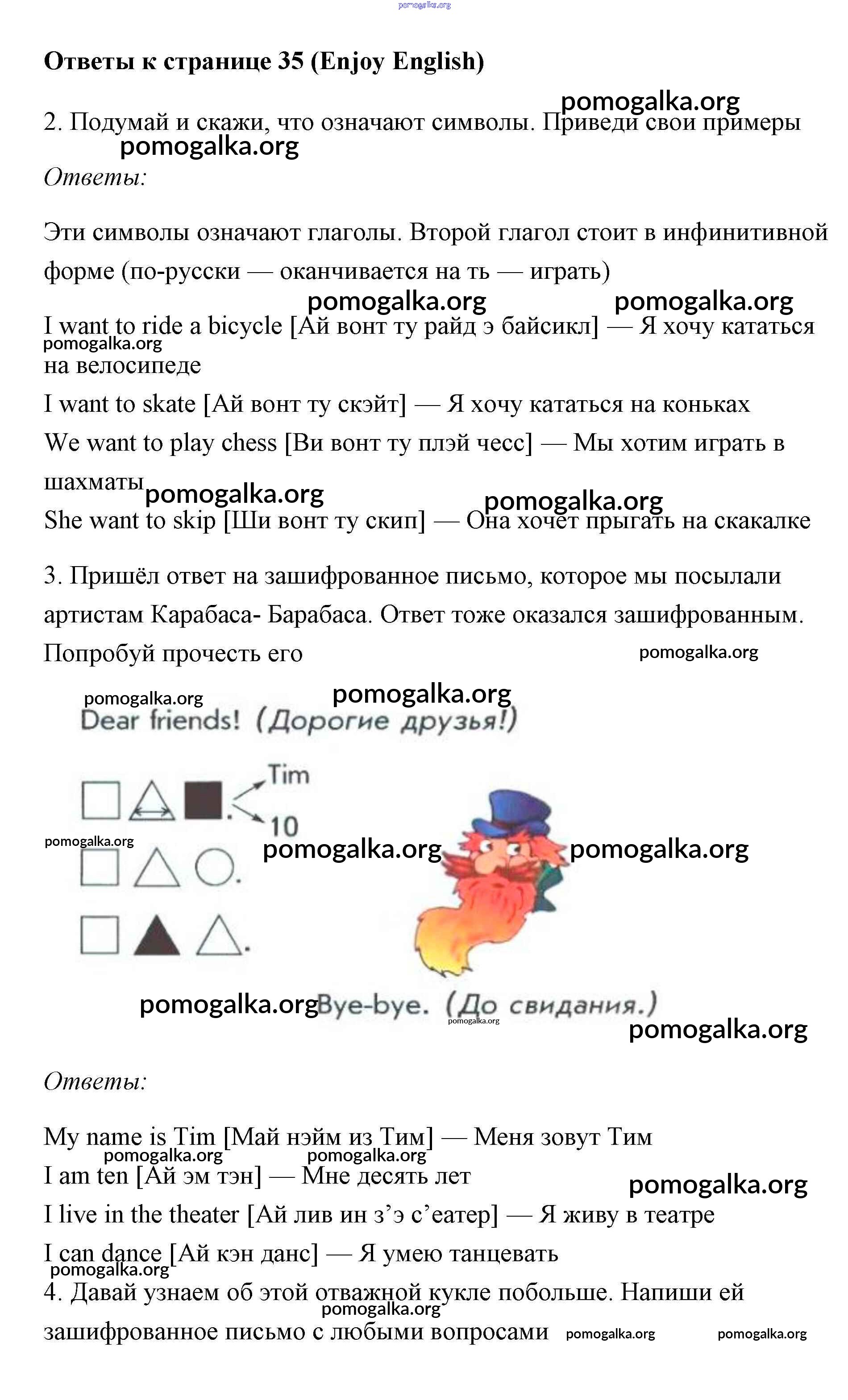 Готовые ответы - Английский язык 1 класс Биболетова - страница 35